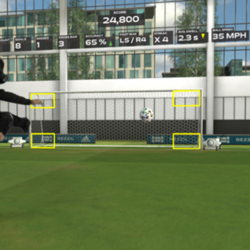 続いて、VR内でスポーツのトレーニングができるゲーム「Player 22」のサッカーの種目のヘディングの体験をしてもらいました。